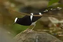 白额燕尾是雀形目鸫科燕尾属鸟类,又叫水鸦雀、白冠燕尾、黑背燕尾。前额至头顶具白斑,头余部、颈、背、喉及胸黑色,腰、腹部及尾下覆羽白色,两翼黑色且具白色翼斑;尾上覆羽黑色并具白色端斑,中央尾羽最短,…全部>>