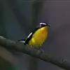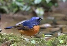 棕腹大仙鹟:体重24-28克,体长15-17厘米,是一种小型的色彩亮丽的鹟。雄鸟上体深蓝,下体棕色,脸黑,额、颈侧小块斑、翼角及腰部亮丽闪辉蓝色。与棕腹仙鹟易混淆,区别在色彩较暗。雌鸟灰褐,…全部>>