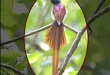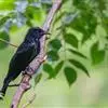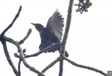 发冠卷尾是中型鸟类,体长28-35厘米。通体绒黑色缀蓝绿色金属光泽,额部具发丝状羽冠,外侧尾羽末端向上卷曲。栖息于海拔1500米以下的低山丘陵和山脚沟谷地带,多在常绿阔叶林、次生林或人工松林中活动。…全部>>