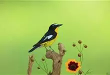 白眉姬鹟是小型鸟类,体长11-14厘米。雄鸟上体大部黑色,眉纹白色,在黑色的头上极为醒目。腰鲜黄色,两翅和尾黑色,翅上具白斑。下体鲜黄色。雌鸟上体大部橄榄绿色。腰鲜黄色,翅上亦具白斑。下体淡黄绿色。…全部>>