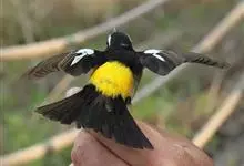 白眉姬鹟是小型鸟类,体长11-14厘米。雄鸟上体大部黑色,眉纹白色,在黑色的头上极为醒目。腰鲜黄色,两翅和尾黑色,翅上具白斑。下体鲜黄色。雌鸟上体大部橄榄绿色。腰鲜黄色,翅上亦具白斑。下体淡黄绿色。…全部>>