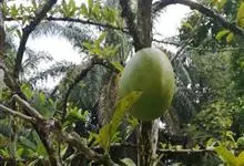 铁西瓜为紫葳科、葫芦树属的常绿小乔木,高5~18米,为典型的热带雨林“老茎生花”植物。其花、果单生于小枝或老茎上;花冠钟形,淡绿黄色,具褐色脉纹,春夏开花。全部>>