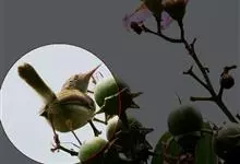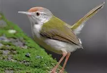 普通缝叶莺,是雀形目鹅科莺亚科缝叶莺属一种。体长10-14厘米,体重7-10克,雄鸟前额棕红,头顶至枕棕橄榄褐,上体橄榄绿染黄,飞羽及尾羽暗褐;繁殖期雄鸟的中央尾羽特形延长,下体淡皮黄白色。…全部>>