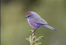 花彩雀莺:体长9-12厘米,是一种毛茸茸偏紫色的雀莺。顶冠棕色,眉纹白。尾长,羽毛松软。前额有一宽阔的眉纹淡黄色,头顶栗色或棕红色,有的具紫蓝色光泽。背灰色,腰和尾上覆羽辉紫蓝色,飞羽灰褐色。…全部>>