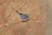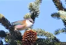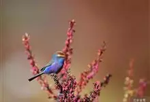 凤头雀莺:小型鸟类。体长9-10厘米,雄鸟呈毛茸茸的紫色和绛紫色,顶冠淡紫灰色,额及凤头白色,尾全蓝。雌鸟喉及上胸白,至臀部渐变成淡紫色,耳羽灰,…全部>>