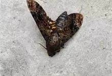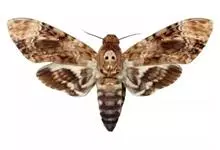 鬼脸天蛾,是鳞翅目天蛾科面形天蛾属动物。成虫翅展100~125毫米,体黑褐色;胸背有骷髅形斑纹;卵圆球形,直径约2毫米,淡黄绿色,表面光滑;老熟幼虫体长70~90毫米,蛹体长约56毫米;前翅为褐色,…全部>>