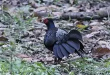 黑鹇是鸡形目雉科目鹇属鸟类,又称鸬雉、黑鸡。体型中等。雄鸟上体黑褐色,背羽具黑紫色金属光泽;头顶具黑羽冠;脸部裸皮呈红色,散生稀疏黑色纤羽;尾长而侧扁,中央两对尾羽红褐色,…全部>>