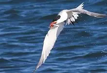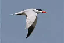 红嘴巨鸥,大型水鸟,体长47~55厘米。夏羽前额、头顶、枕和冠羽黑色。后颈、尾上覆羽和尾白色,尾呈叉状。背、肩和翅上覆羽银灰色。眼先和眼及耳羽以下头侧白色;颏、喉和整个下体也为白色。冬羽和夏羽大致相似,…全部>>