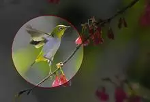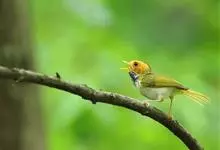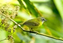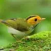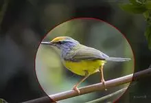 黑脸鹟莺:体长10厘米,是有特色的体小而多彩的莺鸟。粗眉纹,颏、喉及尾下覆羽黄色,脸罩黑,头顶及颈背灰色,上体绿,无翼纹,腹白。虹膜褐色;上嘴色深,下嘴肉色;脚偏绿色。…全部>>