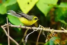 黄腹鹟莺为鹟科鹟莺属的鸟类。属于体长11厘米而腹部黄色的莺。具醒目的白色眉纹,前顶冠灰色,头后及背部绿橄榄色,颏、喉及上胸白色;下体余部黄色。分布于喜马拉雅山脉东段、中国南方、东南亚及大巽他群岛。…全部>>
