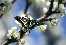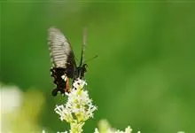 玉带凤蝶是鳞翅目凤蝶科凤蝶属昆虫,又称白带凤蝶、黑凤蝶、缟凤蝶、梁山伯凤蝶。雄蝶前翅外缘、后翅中央有7个大型黄白斑,排列成带。老熟幼虫深绿色,头部黄褐色,后胸前缘有1条齿状的黑色线状横纹,…全部>>