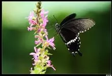 绿带翠凤蝶,又名深山凤蝶,为凤蝶科凤蝶属下的一种。分布于韩国、日本、中国台湾、中国大陆等地。翅黑色,满布金绿色鳞片。前翅亚缘具黄绿色横带纹。后翅外缘有6个略呈新月形的红斑,…全部>>