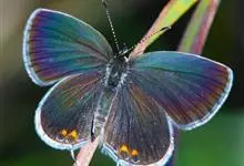光明女神闪蝶:是鳞翅目、闪蝶科、闪蝶属的昆虫。前足相当退化,短小无爪。前翅R脉5条,常共柄。卵半圆球形。幼虫头上有突起,体节上有枝刺,腹足趾钩1至3序中列式。蛹为垂蛹。雄闪蝶的翅面有绚丽的金属般光泽,…全部>>