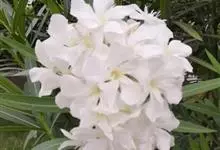 白花夹竹桃是夹竹桃科、夹竹桃属植物夹竹桃的栽培品种。常绿直立大灌木,枝条灰绿色;嫩枝条具稜,被微毛,老时毛脱落。叶3-4枚轮生,下枝为对生,叶面深绿,叶背浅绿色;侧脉纤细平行与中脉成直角;叶柄扁平,…全部>>