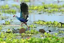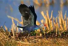 紫水鸡是秧鸡科紫水鸡属鸟类。下辖12个亚种,中国为云南亚种。体长40-45厘米,体羽大多为紫蓝色,翅表面和胸蓝绿色;尾下覆羽白色;嘴红色,粗大并与橙红色额甲相接;额甲宽阔,后缘呈截平状;雌雄鸟相似,…全部>>