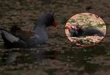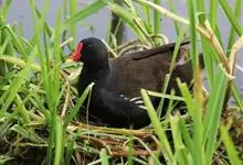 黑水鸡:是鹤形目、秧鸡科的鸟类,共有12个亚种。中型涉禽,体长24-35厘米。嘴长度适中,鼻孔狭长;头具额甲,后缘圆钝;嘴和额甲色彩鲜艳。翅圆形,第2枚初级飞羽最长,或第2枚和第3枚初级飞羽等长,…全部>>