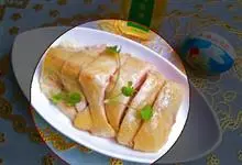 白切鸡又叫白斩鸡,是粤菜系鸡肴中的一种,始于清代的民间酒店。属浸鸡类。其特点为制作简易,刚熟不烂,不加配料且保持原味。白切鸡通常选用三黄鸡与沙姜、蒜茸、葱等食材,慢火煮浸后,晾干切块。成菜后,…全部>>