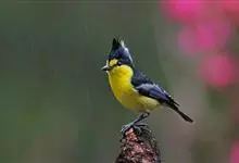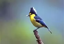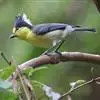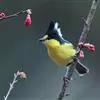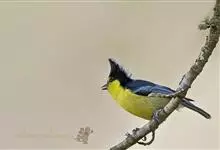 台湾黄山雀体长约13厘米。头顶至后颈黑色,有一长的黑色羽冠,羽冠末端和后颈中央白色。背苍绿色,两翅和尾黑色,羽缘蓝灰色,外侧尾羽白色。额基和下体鲜黄色,尾下覆羽白色,雄鸟腹部有一黑斑。…全部>>