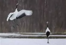 丹顶鹤:是鹤科、鹤属的一种大型涉禽,体长120-160厘米。颈、脚较长,通体大多白色,头顶鲜红色,喉和颈黑色,耳至头枕白色,脚黑色,站立时颈、尾部飞羽和脚黑色,头顶红色,…全部>>