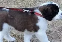 圣伯纳犬,别名巴里汉德,属于大型工作犬,肩高约65~90厘米,体重约50~90千克。圣伯纳犬身体强壮,被毛红褐色和白色相间,头圆而宽大。颈部强壮,胸宽深,背直。前肢长直,腕关节略前倾,后肢腿骨粗壮,…全部>>