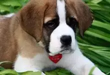 圣伯纳犬,别名巴里汉德,属于大型工作犬,肩高约65~90厘米,体重约50~90千克。圣伯纳犬身体强壮,被毛红褐色和白色相间,头圆而宽大。颈部强壮,胸宽深,背直。前肢长直,腕关节略前倾,后肢腿骨粗壮,…全部>>