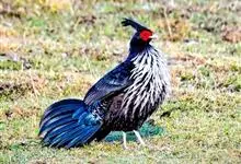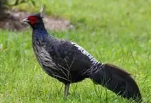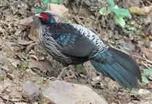 黑鹇是鸡形目雉科目鹇属鸟类,又称鸬雉、黑鸡。体型中等。雄鸟上体黑褐色,背羽具黑紫色金属光泽;头顶具黑羽冠;脸部裸皮呈红色,散生稀疏黑色纤羽;尾长而侧扁,中央两对尾羽红褐色,…全部>>
