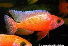 非洲王子是一种如同鲈鱼一般的典型的鲈形目的体型的鱼。小型慈鲷,成年个体10~12cm,如同鲈鱼一般的典型的鲈形目的体型,体色橙黄,背鳍近边缘处有一条宽约2mm的黑色条纹非常清晰和显眼。雌雄同形,雄性…全部>>