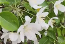 山荆子 Borkh.):为落叶乔木,树高可达4-5米,最高可达10米以上。灰褐色,光滑,不易开裂。新梢黄褐色,无毛。嫩梢绿色微带红褐。叶片椭圆形,先端渐尖,基部楔形,叶缘锯齿细锐。伞形总状花序。花白色,…全部>>