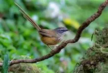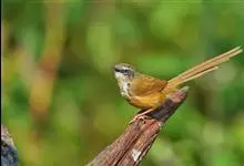 黑喉山鹪莺:体长16厘米,是一种长尾的褐色鹪莺。具明显的白色眉纹及形长的尾。特征为胸具黑色纵纹。上体褐色,两胁黄褐,腹部皮黄;脸颊灰,具明显的白色眉纹及形长的尾。无下髭纹,下体少黑色。虹膜浅褐色,…全部>>