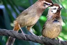 白颊噪鹛是雀形目噪鹛科噪鹛属鸟类,又称土画眉、小画眉、小噪鹃。成鸟额至头顶栗褐色,长眉纹、眼先和颊纹棕白色,眼后至耳羽深褐色,…全部>>
