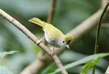 白腹凤鹛是绿鹃科、绿凤鹛属的小型鸟类,体长10-12厘米。上体从头到尾黄绿色,有短的羽冠,头顶微具黑色羽轴纹;眼先、眼周,耳羽和下体灰白色,尾下覆羽黄色。虹膜褐色或红褐色,上嘴浅褐色或肉褐色,…全部>>