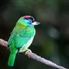 金喉拟啄木鸟,是须鴷科、拟啄木鸟属的鸟类。金喉拟啄木鸟为小型鸟类,体长19-24厘米。额深红色,头顶金黄色,后枕具一大块深红色斑,耳羽和头侧银灰色,上体草绿色,颏和上喉金黄色,下喉淡银灰色,…全部>>