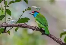 蓝喉拟啄木鸟,是须鴷科、拟啄木鸟属的鸟类。蓝喉拟啄木鸟为小型鸟类,体长20-23厘米。前额至头顶鲜红色,其上有一宽阔的黑色横带,将此红色分为前后二块;头侧、颏、喉蓝色,下喉两侧各具一红色点斑。…全部>>