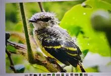 绿拟啄木鸟为鴷形目,须科,拟啄木属的一种。形较大拟啄木鸟略小,体长约260mm。头、颈及胸浅褐而具淡黄白色条纹;喉几为淡黄白色;身体余部草绿色。虹膜棕褐色,眼周裸露部黄色;嘴峰角黄色;跗跖和趾角黄…全部>>