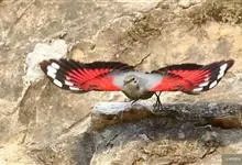 红翅旋壁雀:体重15-23克,体长120-178毫米。是一种体型略小的鸟类。尾短而嘴长,翼具醒目的绯红色斑纹。飞羽黑色,外侧尾羽羽端白色显著,初级飞羽两排白色点斑飞行时成带状。繁殖期雄鸟脸及喉黑色,…全部>>