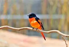 灰喉山椒鸟:共有8个亚种。体长18-22厘米。雄鸟头部和背亮黑色,腰、尾上覆羽和下体朱红色,翅黑色具一大一小的两道朱红色翼斑。中央尾羽黑色,外侧尾羽基部黑色,端部红色。…全部>>