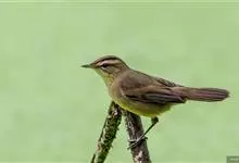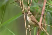 黑眉苇莺:体重7-11克,体长11-13厘米。上体橄榄棕褐色;眉纹淡黄色,杂有明显黑褐色纵纹;第2枚初级飞羽较第6枚短;下体白色,两胁暗棕色。虹膜暗褐色;嘴黑褐色,下嘴基淡褐色;脚暗褐色。…全部>>