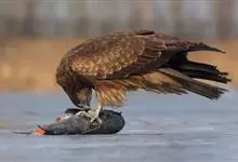 短趾雕:体长62-70厘米,体重1.2-2.3千克。它们的颔、颈和胸部上方呈浅棕色。头部浑圆像猫头鹰般,眼睛呈鲜黄色。身体沉重,上体灰褐,下体白而具深色纵纹,喉及胸单一褐色,腹部具不明显的横斑,…全部>>
