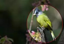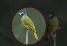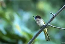灰短脚鹎,体长19-22厘米。头顶和短的羽冠黑色,上体暗灰色,耳羽灰褐色,两翅表面橄榄绿黄色。大覆羽和内侧飞羽外翈橄榄黄色,在翅上形成大块绿黄色斑,在灰色的上体极为醒目。尾暗褐色具橄榄绿色羽缘。…全部>>
