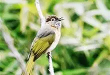 领雀嘴鹎是雀形目鹎科雀嘴鹎属鸟类,又称羊头公、青冠雀、黄爪鸟等。嘴厚重,呈象牙色;具短羽冠;头黑色;颈背灰色;喉白色;嘴基周围近白色;脸颊具白色细纹;上体暗橄榄绿色,…全部>>