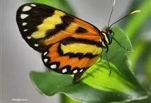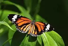 黑脉金斑蝶:翅阔8.6-12.4厘米。雄蝶较雌蝶为大。成年蝶颜色鲜艳,翅膀上有显眼的橙色及黑色斑纹,周围是宽阔的黑色边框,布有许多白色斑点。这种引人注目的着色是对捕食者的视觉警告,表示这个物种有毒;…全部>>