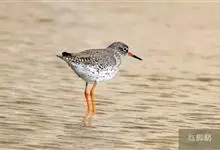 红脚鹬:体长28厘米,上体褐灰,下体白色,胸具褐色纵纹。飞行时腰部白色明显,次级飞羽具明显白色外缘。尾上具黑白色细斑。虹膜黑褐色,嘴长直而尖,基部橙红色,尖端黑褐色。脚较细长,亮橙红色,…全部>>