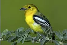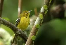 黑翅雀鹎:体重14-19克,体长11.5-16厘米。是树栖性绿色小鸟,外形与叶鹎相似,下体黄色。鸟喙直,翼长而尖,总体羽毛是绿色和黄色相结合,翼上具两道明显近白色横纹,翼近黑而羽缘白。…全部>>