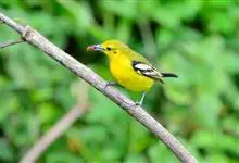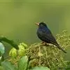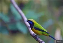 蓝翅叶鹎:小型鸟类,体长15-18厘米。雄鸟通体草绿色,尾蓝绿色,肩和翅亮蓝 色,胸缀有黄色,颏、喉黑色。雌鸟颏,喉蓝绿色。栖息在海拔1500米以下的常绿阔叶林、次生林和林缘疏林灌丛中。…全部>>