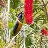 橙腹叶鹎体形大小和金额叶鹎相似,体长16~20厘米。额至后颈黄绿色,其余上体绿色,小覆羽亮钴蓝色,形成明显的肩斑。颏、喉、上胸黑色具钴蓝色髭纹,其余下体橙色。飞羽和尾羽雄鸟黑色、雌鸟绿色。…全部>>