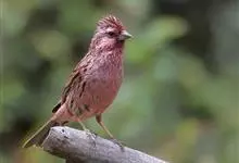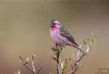 红眉朱雀:体长15厘米,是一种中等体型的朱雀。上体褐色斑驳,眉纹、脸颊、胸及腰淡紫粉,臀近白。雌鸟无粉色,但具明显的皮黄色眉纹。雄雌两性均甚似体型较小的曙红朱雀,但嘴较粗厚且尾的比例较长。…全部>>