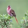 藏朱雀:全长约17-18厘米。雄鸟头部深红色具光辉,喉部暗红色具白色点斑;背部灰白色,各羽具玫瑰红色羽端,形成许多斑纹;腰部淡玫瑰红色;翅暗褐色,沾灰白,羽端沾玫瑰红或灰白色;尾暗棕色,端缘玫瑰红色…全部>>