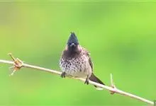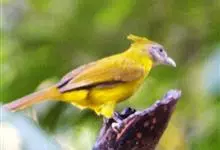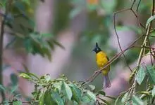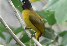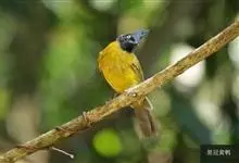 黑冠黄鹎:体长18-21厘米,是一种中等体型偏黄色鹎。整个头、颈、颏、喉黑色,头顶有显著直立的羽冠,黑色,上体褐橄榄黄绿色,下体橄榄黄色。虹膜偏红;嘴及脚黑色。…全部>>
