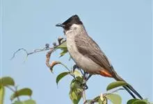 黑喉红臀鹎是雀形目鹎科鹎属鸟类,别称有黑头公、红臀鹎。头顶黑色具光泽;后颈、肩和背暗褐具灰色狭缘;腰羽几纯暗褐,尾上覆羽近白色,羽端浅灰褐色;尾羽褐黑,中央尾羽具狭窄的白色端斑,…全部>>