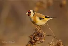 红额金翅雀:共有14个亚种。小型鸟类,体长12-14厘米。额、脸颊和颏朱红色,眼先和眼周黑色,在淡色的头部极为醒目。上体灰褐或乌褐色,尾上覆羽白色,两翅和尾黑色,翅上有黄色斑。下体喉、胸灰褐或乌褐色…全部>>